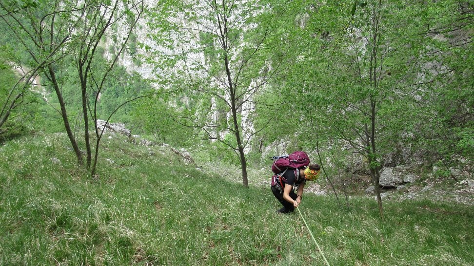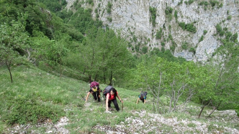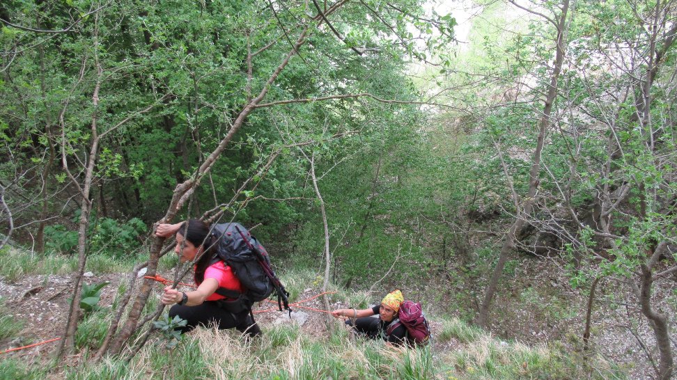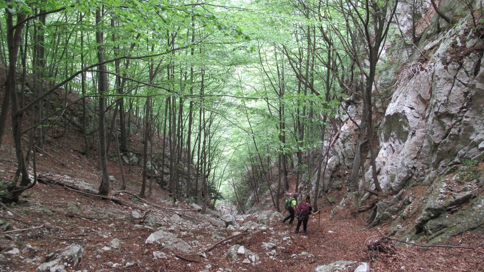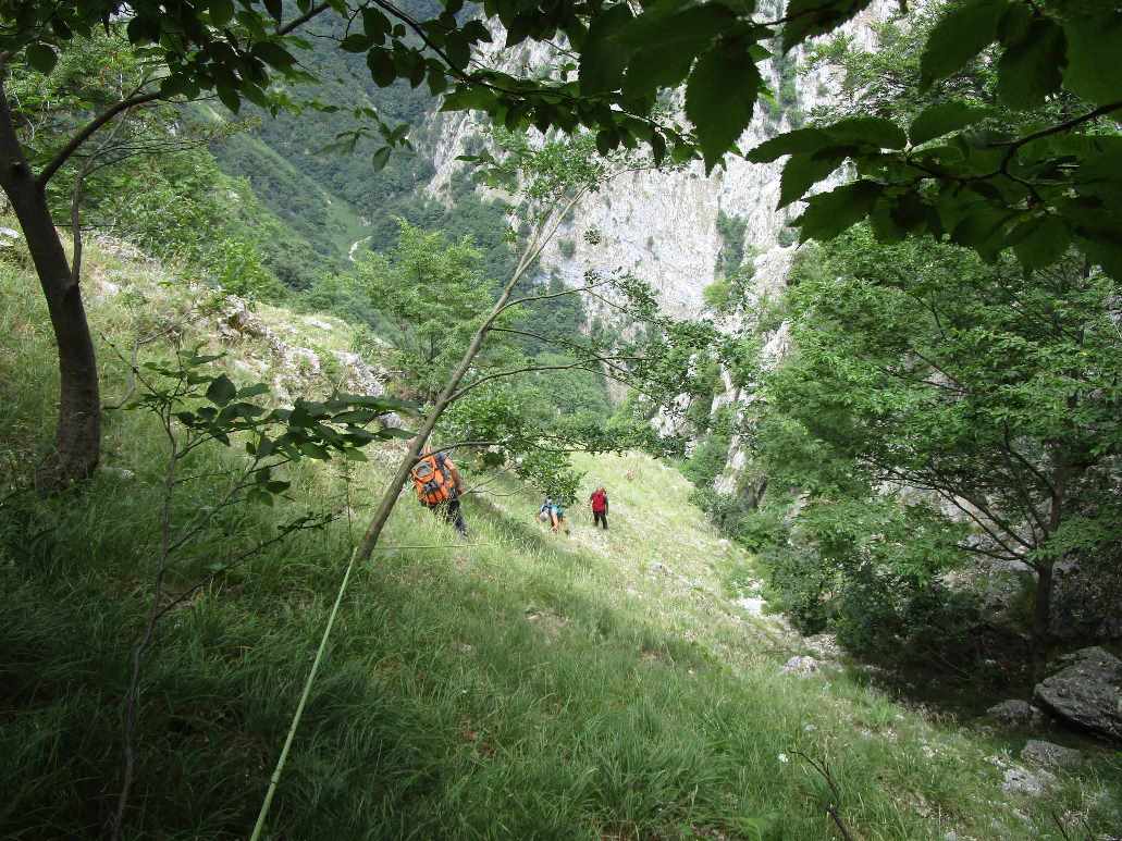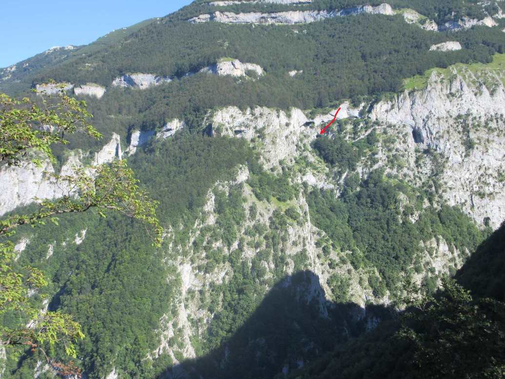 Si trova in una posizione impervia incastonata nelle pareti a picco che sovrastano le valli di Selvaroma e Inferno. Semi sconosciuta, in pochi la conoscono. L'itinerario che propongo e qui illustrato dalle foto è molto più bello e interessante di quello consueto. Parte dal ponte di Pennapiedimonte fino a Valle Strano e poi per una traccia abbastanza evidente per gran parte(ma poi si perde), va ad incrociare il percorso consueto nell'ultimo tratto prima di arrivare alla grotta. L'ultima parte del tragitto, come da foto, percorre tratti ripidi ed esposti dove è meglio assicurare con una corda i meno esperti. In ultimo da segnalare una corda fissa che permette l'accesso alla grotta per superare una cengia stretta ed esposta. La grotta è molto profonda, circa 350 mt. Si possono percorrere però solo i primi 50 mt. Dopo si trova un cancello con lucchetto a sbarrare la strada che la forestale ha predisposto per proteggere le delicate e spettacolari concrezioni che si trovano al suo interno.