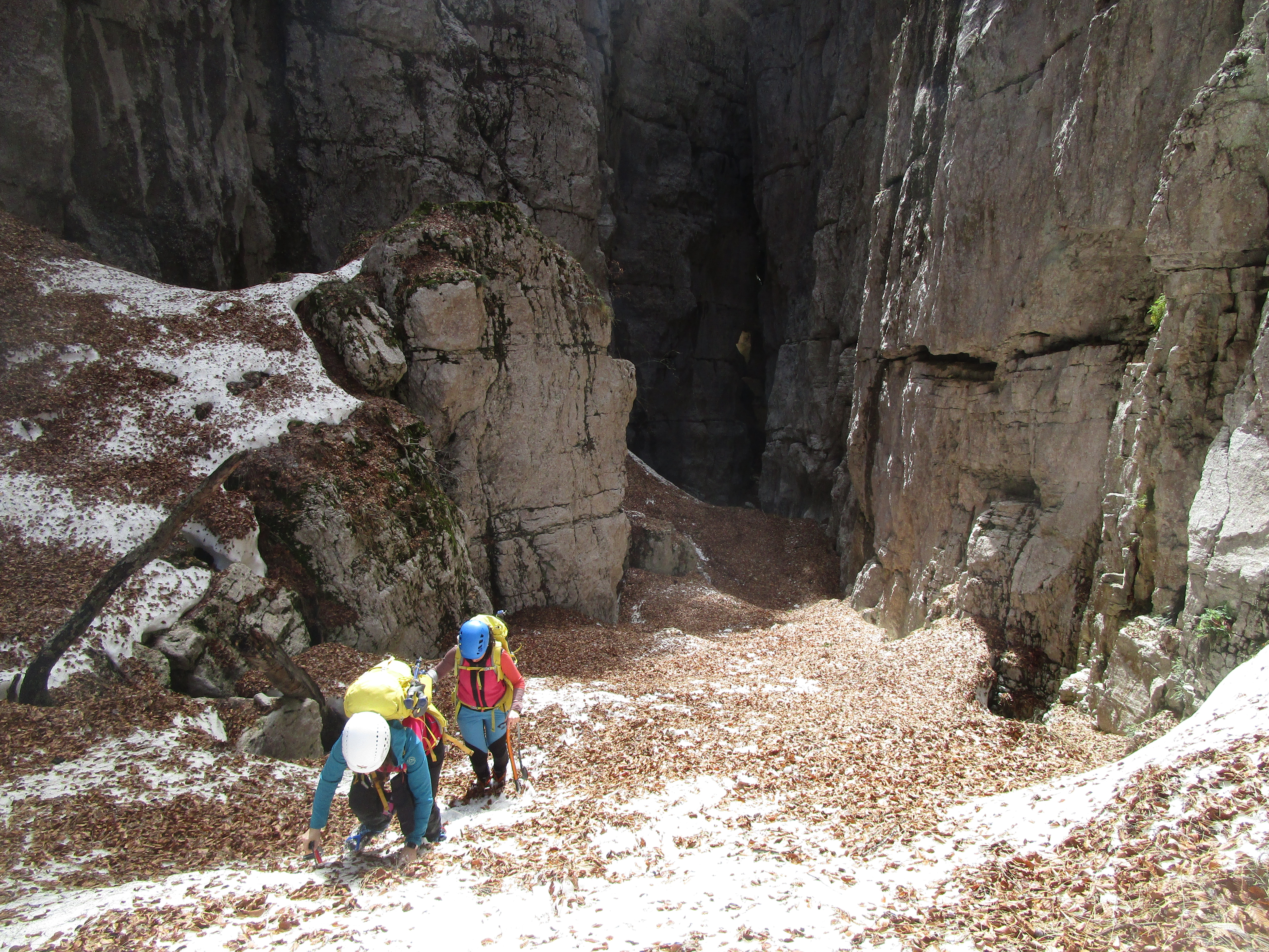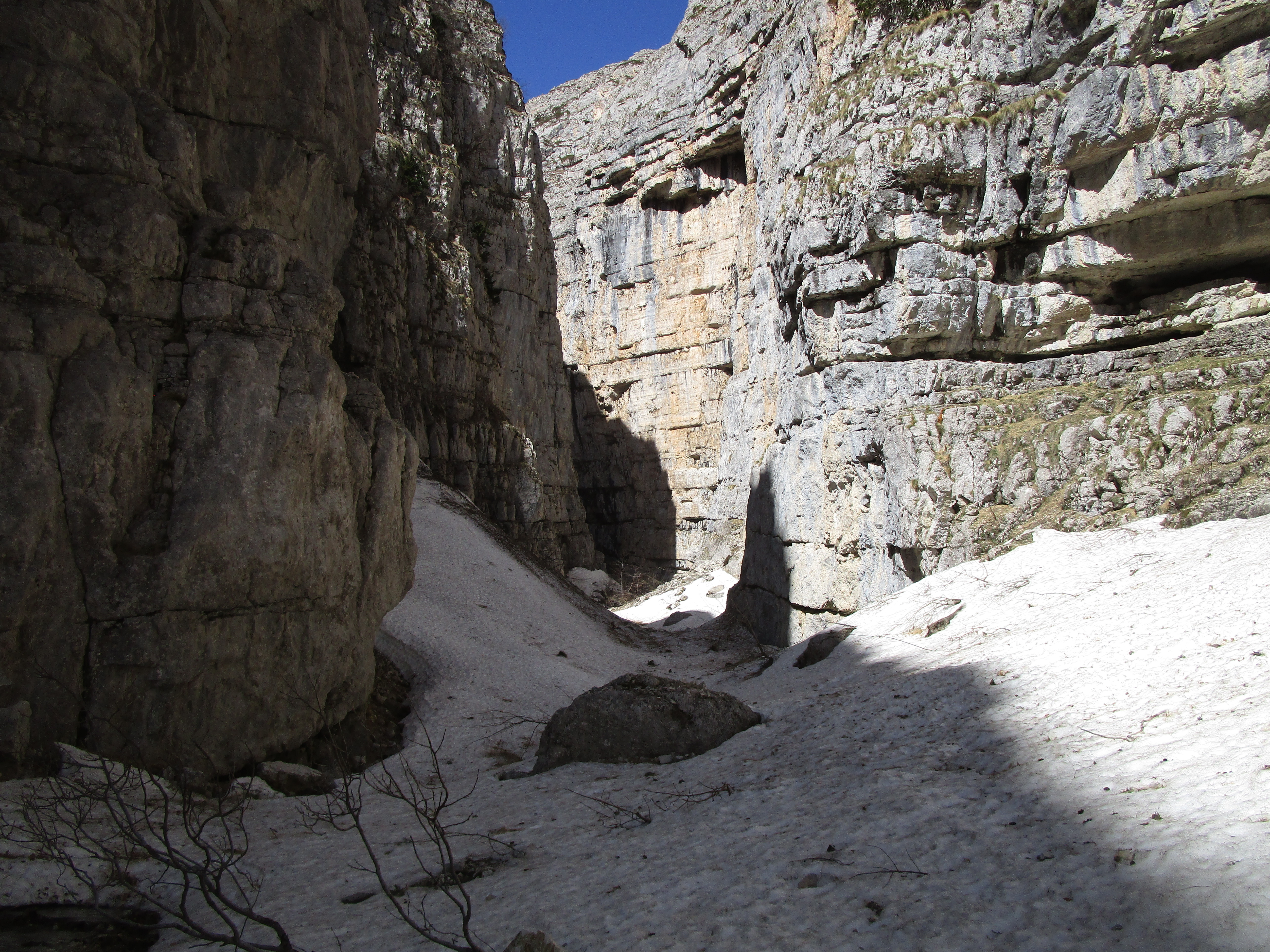 Fara San Martino - La valle del Macellaro si stacca dal più ampio Vallone di Santo Spirito. Verso la metà è caratterizzata da un strettisima gola delimitata da altre pareti rocciose che quasi si toccano. Più o meno al centro di essa vi è stata posizionata da appasionati locali una scaletta in ferro per superare un salto roccioso. Prima ancora i pastori vi avevano appoggiato un tronco d'albero dove si arrampicavano per superarlo. La valle è chiusa a monte da una alta parete rocciosa dove a primavera vi scorre una bellissima cascata di acqua di circa 30 mt. Essendo la valle incassata in parecchi tratti è consigliato l'uso del casco. Infatti si assiste spesso a caduta di pietre dall'alto. Le foto che mostrano la zona, sono state scattate durante una escursione primaverile, quindi con neve, perchè il paesaggio è mozzafiato. Però è più impegnativo, bisogna stare attenti ai ponti di neve e ai traversi ripidi. Lo sconsiglio a persone poco esperte.